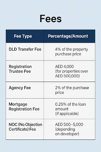 - 4% transfer fee paid to the Dubai Land Department